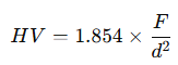 where F is the applied force (kgf) and d is the average diagonal length (mm).
